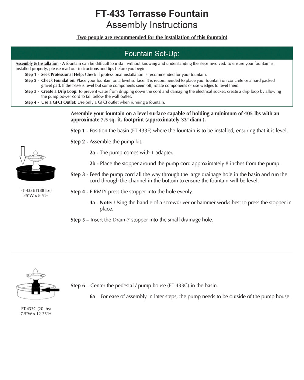 4) If your water fountain has an extra large base/pool/pond, a forklift is sometimes required for delivery as the base will be too big for the carrier's lift-gate service. You must arrange this prior to your water fountain delivery. NOTE: Although most water fountains DO NOT require a forklift because they can fit on a lift gate, we will notify you prior to shipping if your fountain requires a fork lift.