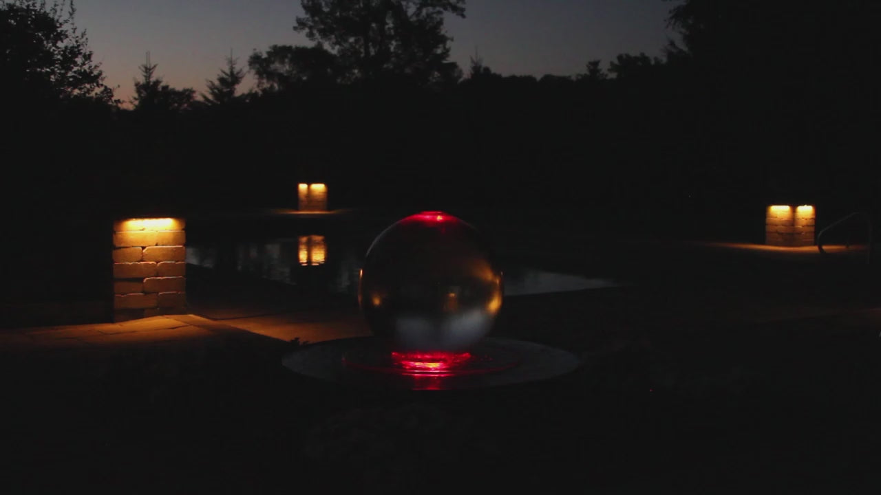 The Crystal Sphere large outdoor water fountain from Blue Thumb Fountains is a flawless execution of a contemporary water feature design. A 550-pound glass-like acrylic ball, seemingly afloat atop a steel plate, elevates any outdoor oasis with this large outdoor fountain, offering 360° visual and auditory points as water cascades all around the glass-like sphere. The water movement, enhanced by the contrast of the sphere and the black powder finished stainless steel bowl, creates a striking visual contrast. At nighttime, activate the LED lights and create a truly unique ambiance with a spectrum of colors. The Crystal Sphere large fountain from Blue Thumb Fountains is a harmonious blend of form and function.