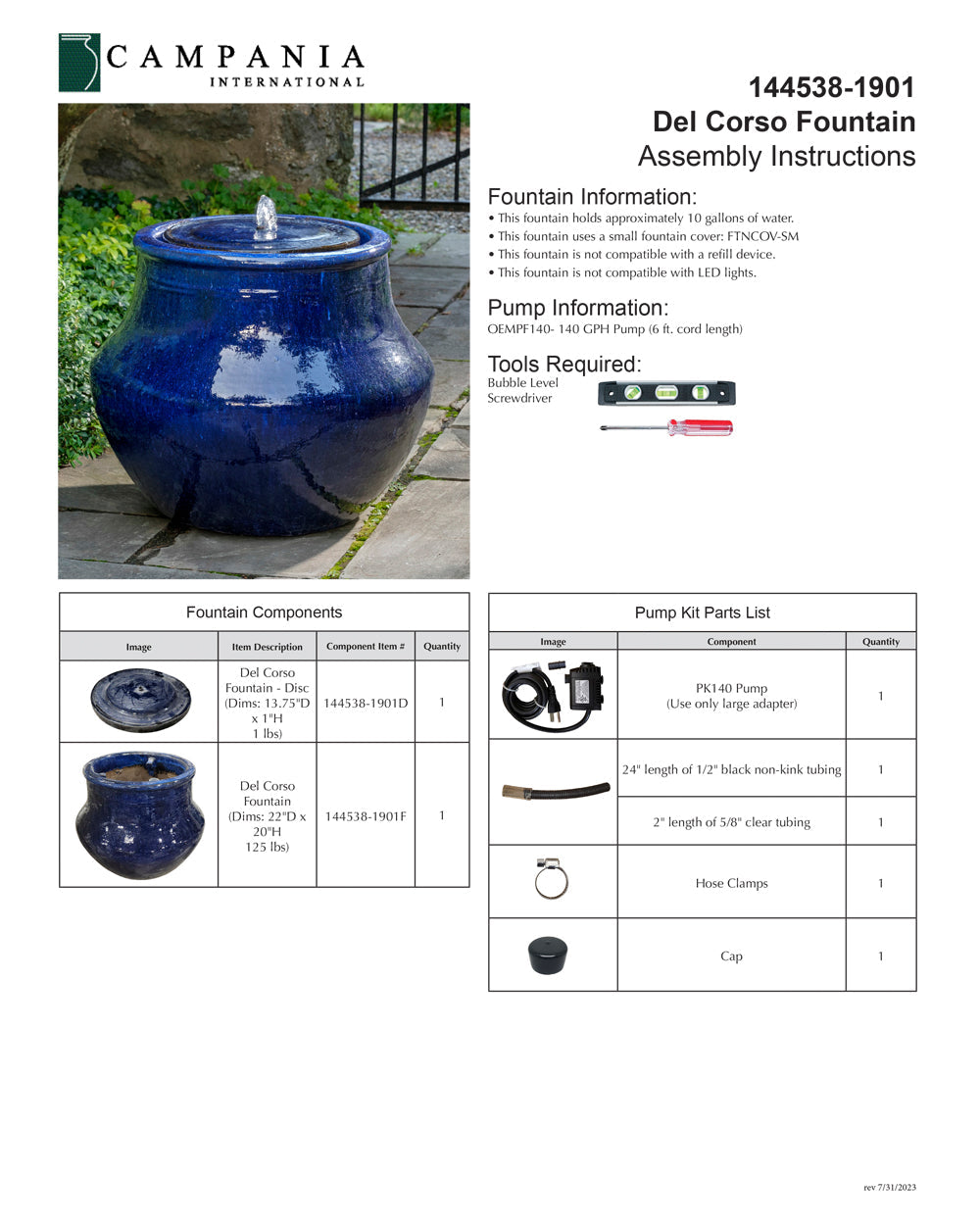 Del Corso Glazed Terra Cotta Fountain Includes: