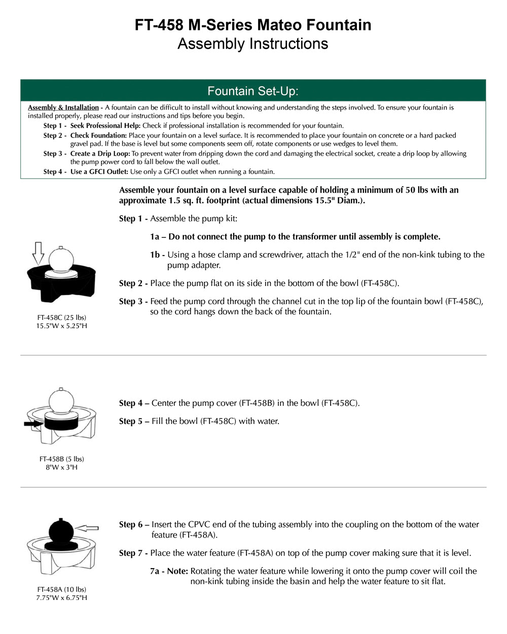 - All hardware and tubing required to properly assemble the fountain