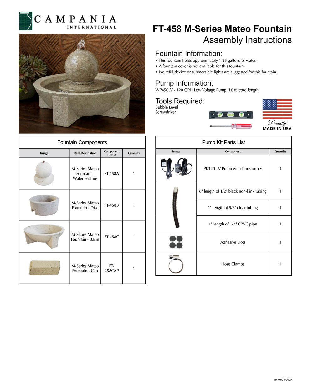 M-Series Mateo Fountain Includes: