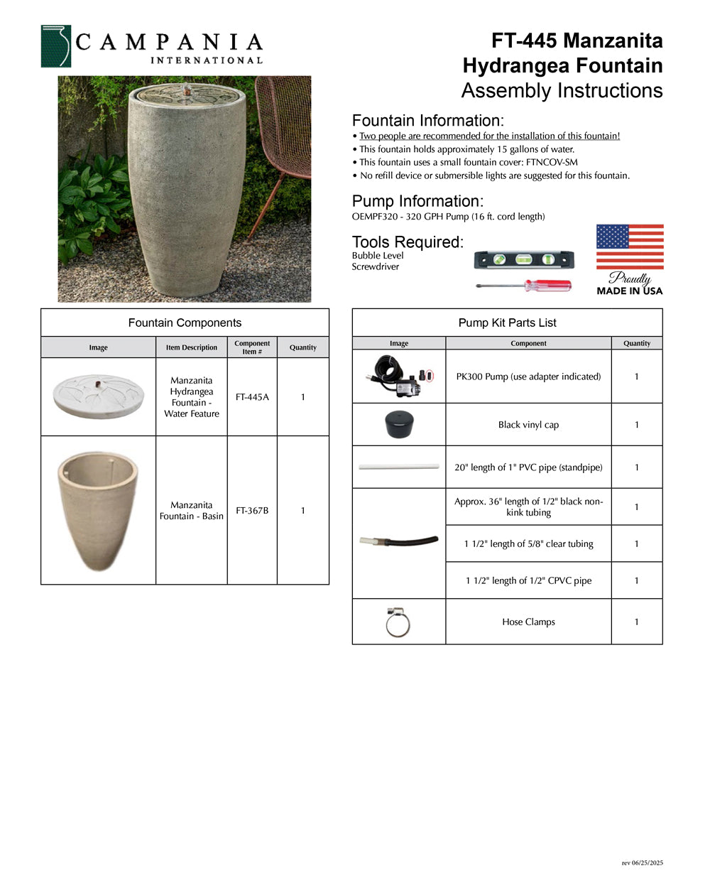 Campania proudly manufactures its cast stone products in the USA using locally sourced materials. All of our cast stone pieces are manufactured using the wet casting technique with a proprietary high density cast stone mix, yielding a PSI strength of approximately 7,500. The mix is comprised primarily of water, sand, stone aggregate and cement. Our cast stone products may qualify for LEED credits as applicable to your project. Cast stone produces a strong and durable product that will weather naturally in an outdoor environment. Simply stated, cast stone is chosen for its beauty and authenticity. Our material is natural, authentic, made in the USA, and 100% recyclable.