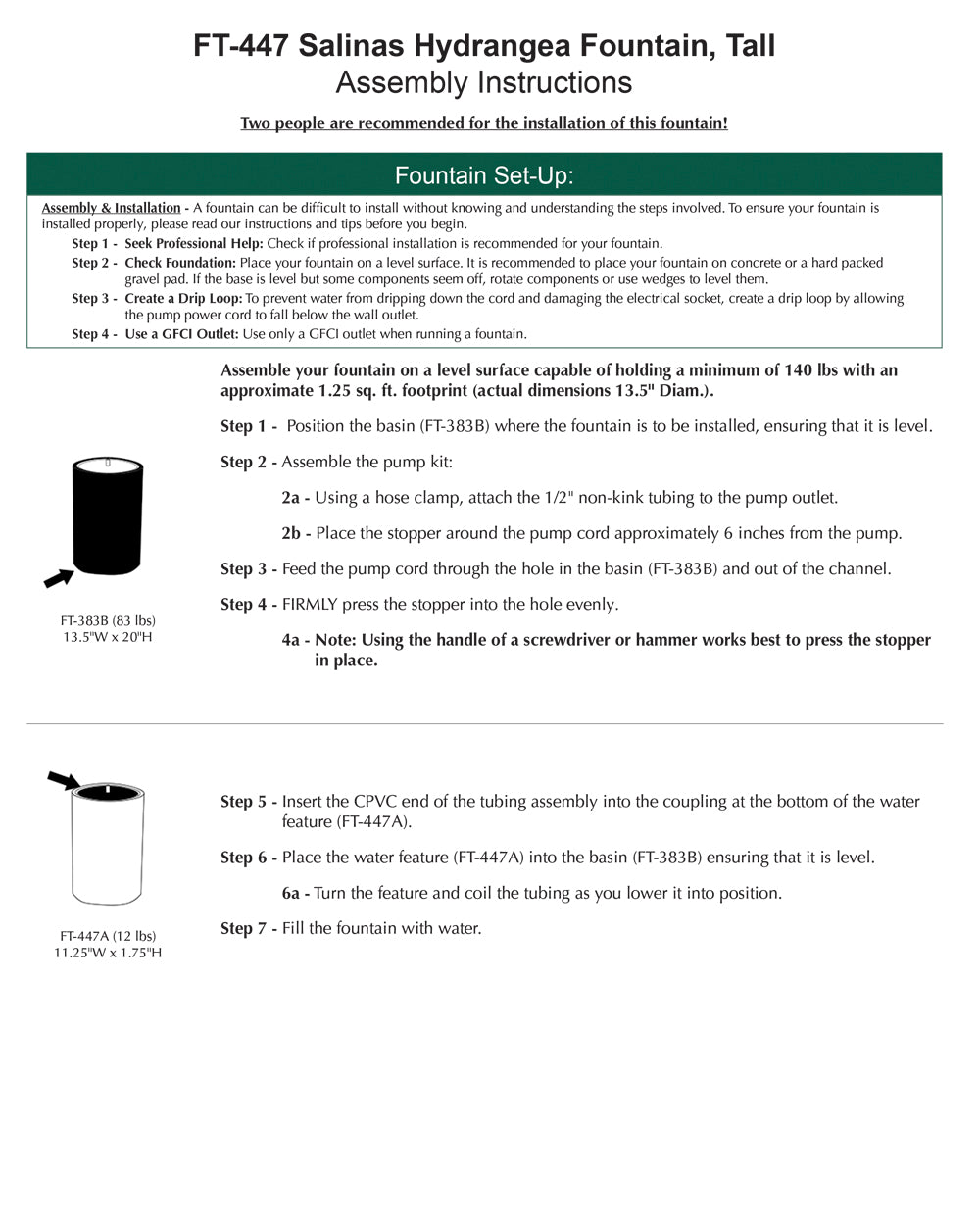 - All hardware and tubing required to properly assemble the fountain